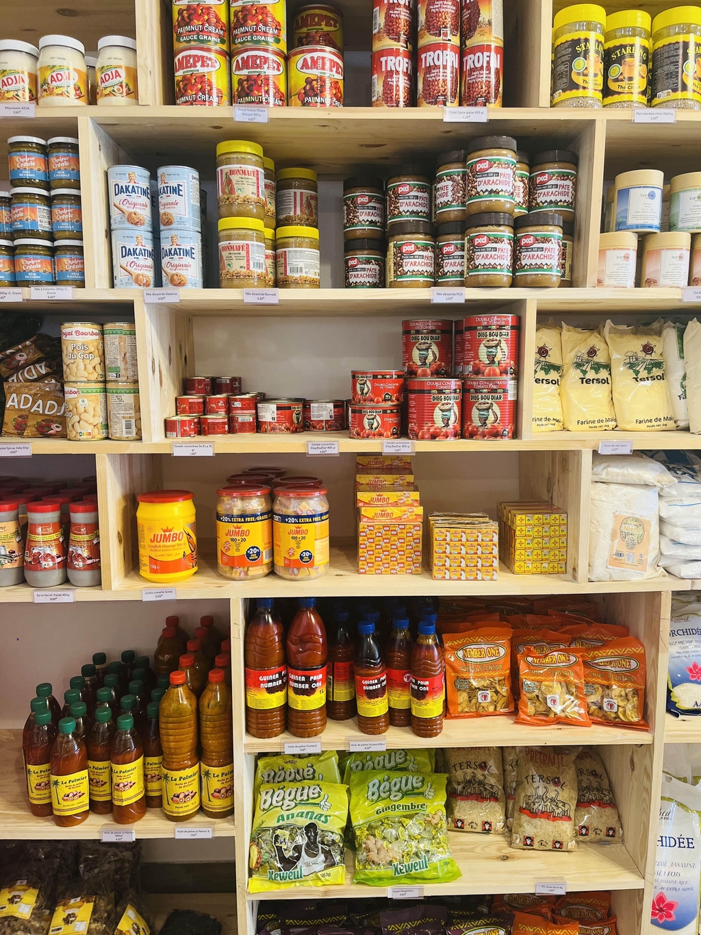 Produits d'Afrique et du monde: thé, café, bissap, attieke, piment, riz, gombo, mangue séchée, coco rapée caramélisée...