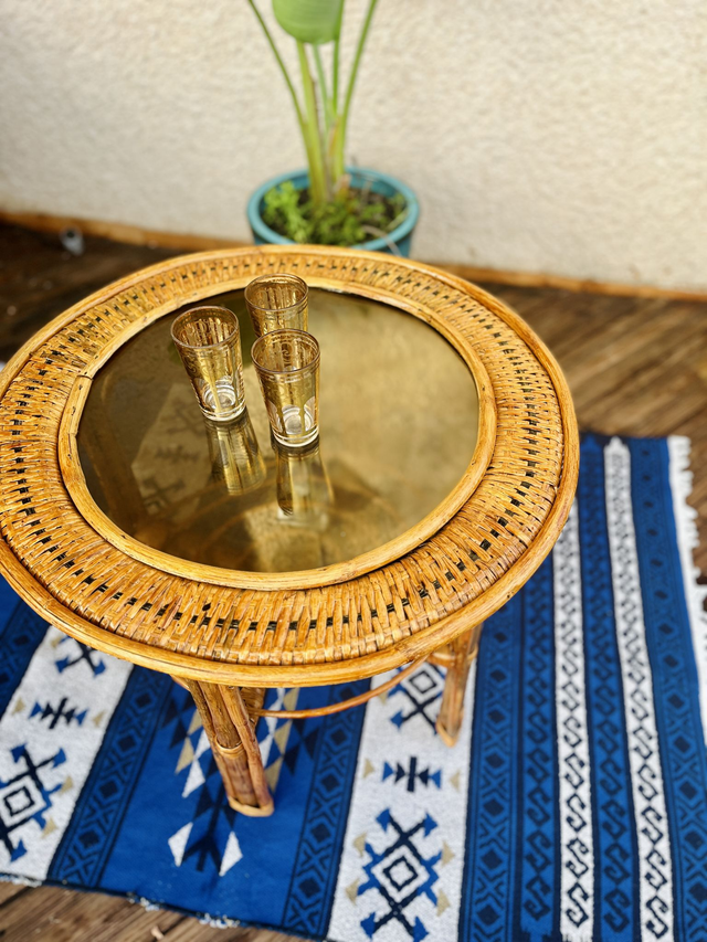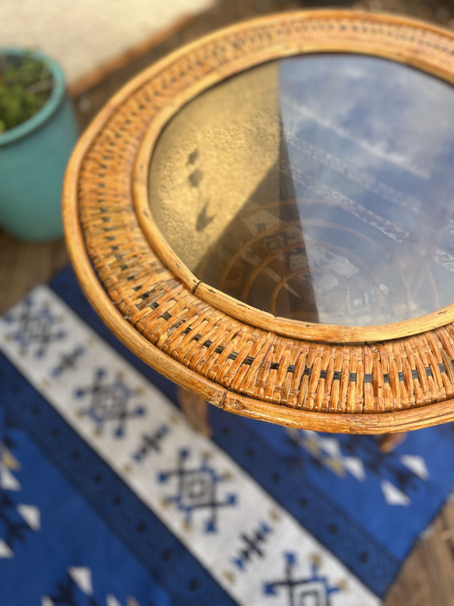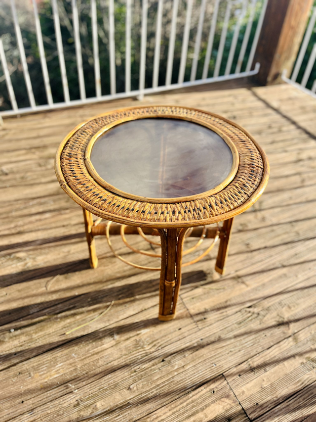 Table basse en rotin et verre « Boké »