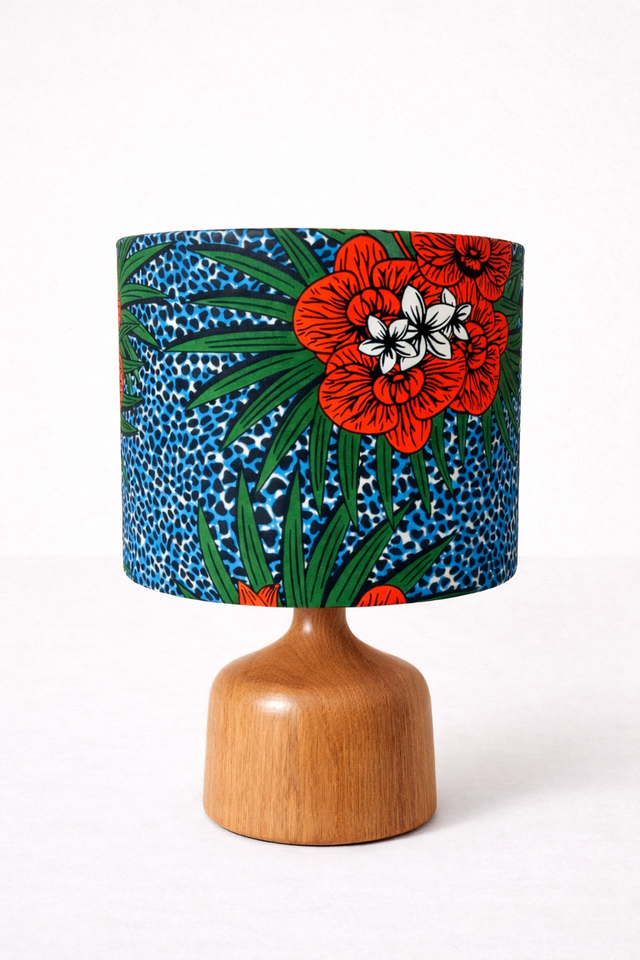 Abat-jour en wax fait main, création originale au travail soigné et aux finitions propres. Son tissu coloré apporte une touche de couleur et de caractère à votre intérieur, idéal pour réchauffer une pièce et créer une ambiance chaleureuse. Chaque modèle est unique et peut présenter de légères variations.